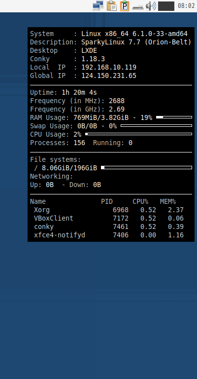 再ログイン後、デスクトップ右に、「Conky」の表示が現れます。