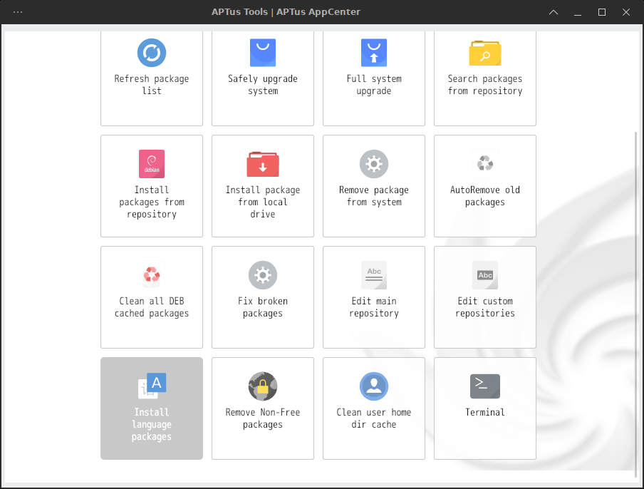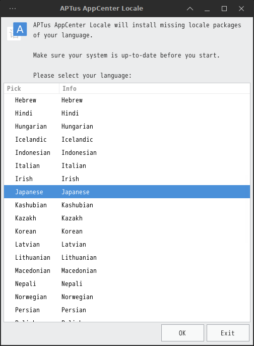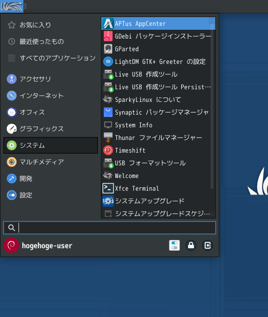 「SparkyLinux」では、「APTus」を利用して、言語パッケージをインストールできます。