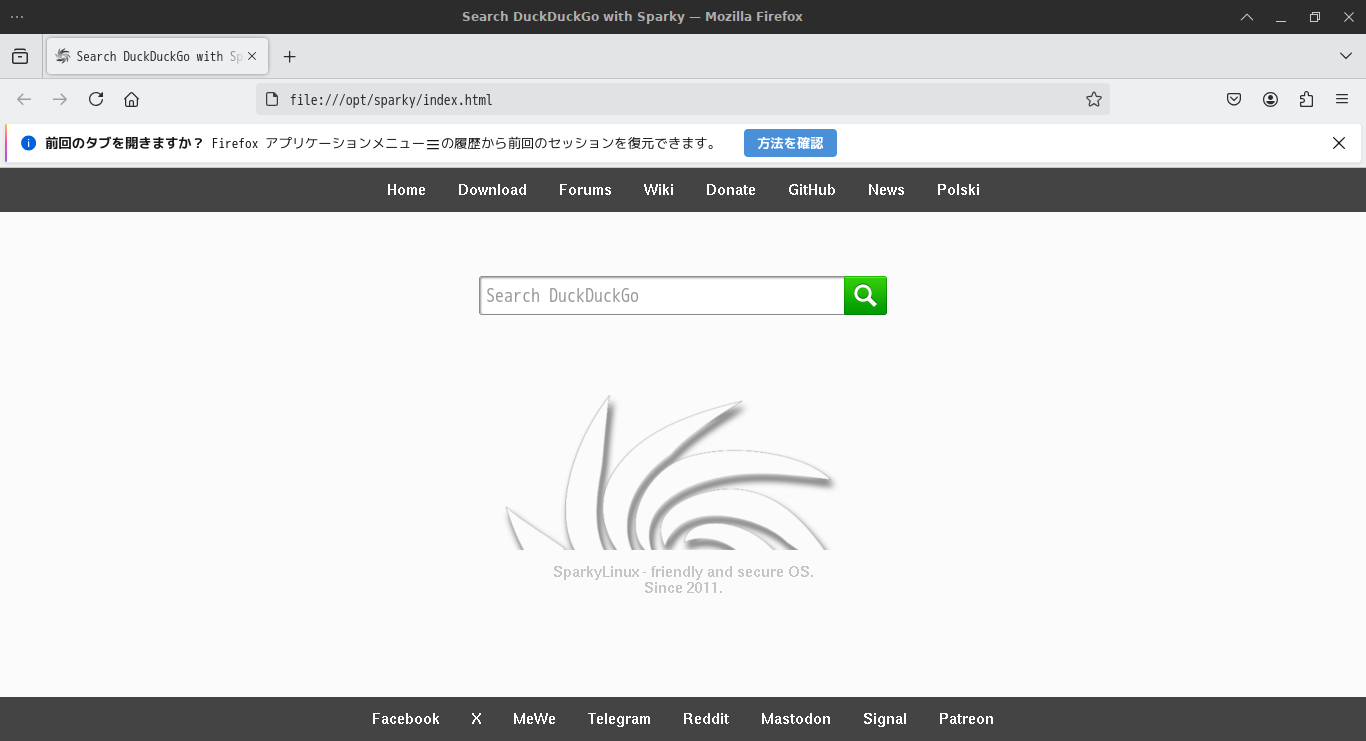 1. 概要 ブラウザとして、「Firefox」がデフォルトでインストールされています。 言語パッケージのインストール時点で、日本語化もされています。 2. 起動 「スタート」→「インターネット」→「Firefox」