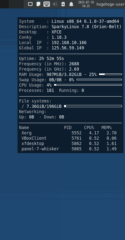 SparkyLinux - 7.8 - XFCE - タスクマネージャ Conky