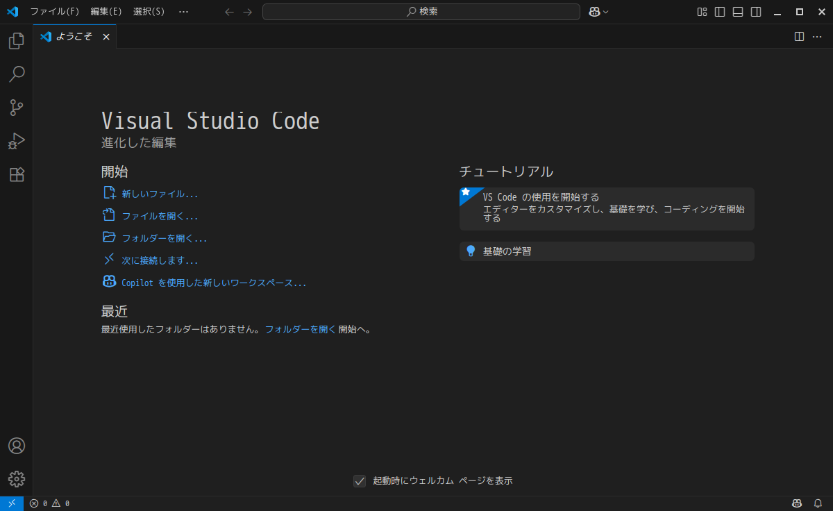 1. 概要 開発環境として、「Visual Studio Code」を使用します。 2. インストール 「APTus」でインストールします。 インストール手順の詳細や操作については、「Visual Studio Code - インストール・更新」をご参照ください。 3. 起動 「スタート」→「プログラミング」→「Visual Studio Code」