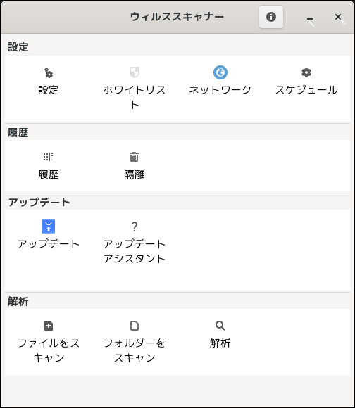 1. 概要 「ClamTk」は、「GUI」で操作するアンチウィルスソフトです。 2. インストール 「Synaptic」で、「clamtk」を検索してインストールします。 3. 起動 「スタート」→「ユーティリティ」→「ClamTk」