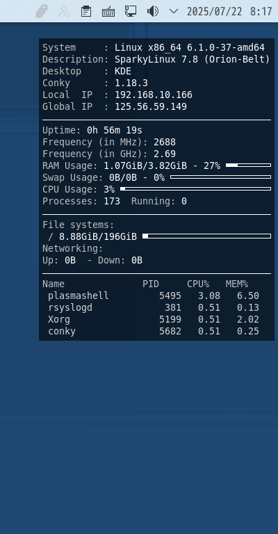 SparkyLinux - 7.8 - KDE - タスクマネージャ Conky