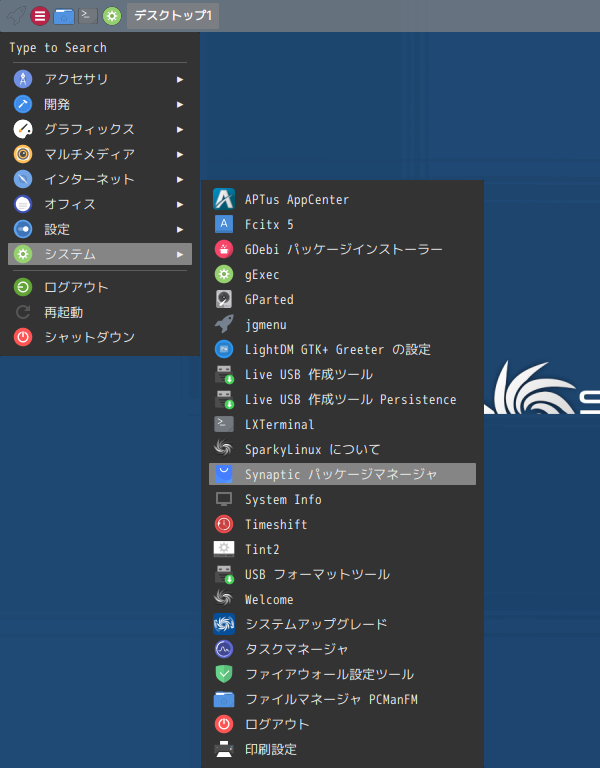 SparkyLinux - 7.8 - Openbox - パッケージ管理フロントエンド