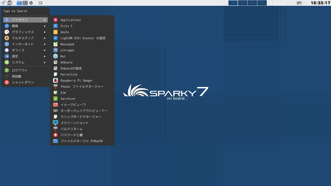 1. 概要 基本的な操作や、カスタマイズ方法について記述します。 2. 共通事項 「PekWM」の共通的な操作やカスタマイズ方法に関しては、「PekWM - 共通事項」をご参照ください。 本プラットフォームでは、下記の項目を適用しました。 ・定義 ・自動起動 ・キー定義 ・画面キャプチャ ・パネル・メニュー 3. カスタマイズ前後 デフォルトのデスクトップ・メニューです。