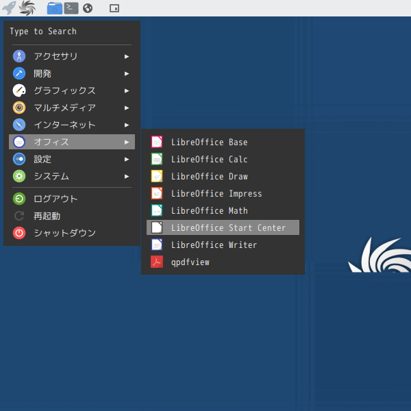 1. 概要 オフィススイートとして「LibreOffice」を使用します。 「PekWM」を「Openbox」上にインストールしていますが、「Openbox」には、「LibreOffice」は、デフォルトでは、インストールされていません。 2. インストール 「Synaptic」で、「libreoffice-l10n-ja」「libreoffice」を検索して、それぞれインストールします。 本体と言語パッケージと両方インストールしなければ、なりません。 3. 起動 「スタート」→「オフィス」→「LibreOffice Start Center」→「LibreOffice Start Center」