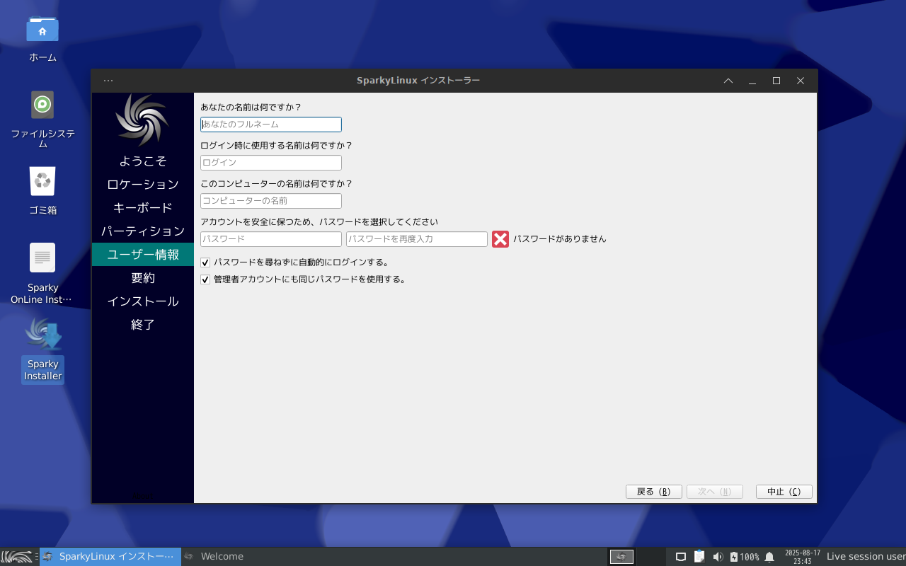 それぞれのインストールで、若干手順が異なる部分がありますが、「XFCE」「LXQt」「KDE」に関しては、ほぼ同じものなので、ここで一括して記述します。