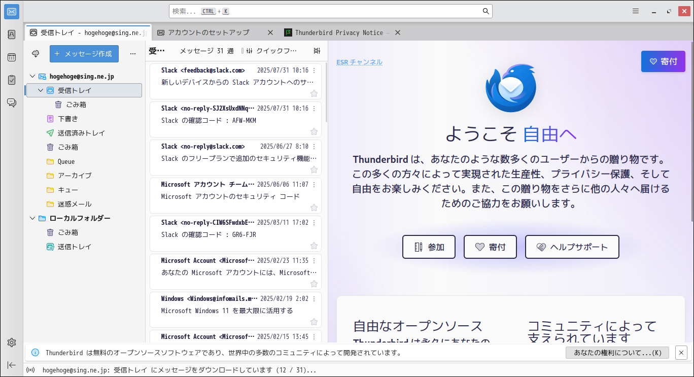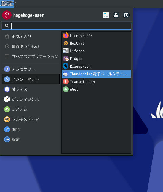 1. 概要 メールクライアントとして、「Thunderbird」がインストールされています。 言語パッケージをインストールした時点で、日本語化されています。 2. 起動 「スタート」→「インターネット」→「Thunderbird」