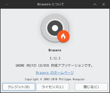 1. 概要 光ディスク(CD・DVD)ライティングソフトとして、「Brasero」を使用します。 2. インストール 「Synaptic」で、「brasero」を検索して、インストールします。 3. 起動 「スタート」→「マルチメディア」→「Brasero」
