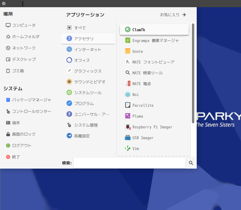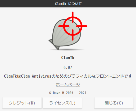 1. 概要 「ClamTk」は、「GUI」で操作するアンチウィルスソフトです。 2. インストール 「Synaptic」で、「clamtk」を検索して、インストールします。 3. 起動 「スタート」→「アクセサリ」→「ClamTk」