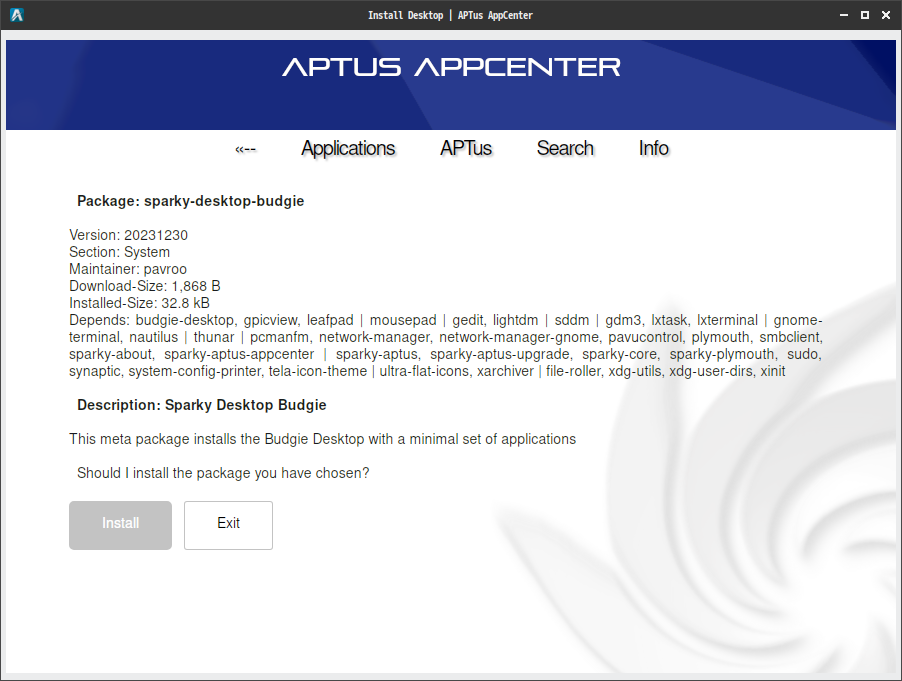 「APTus」で、他のデスクトップ環境をインストールできます。