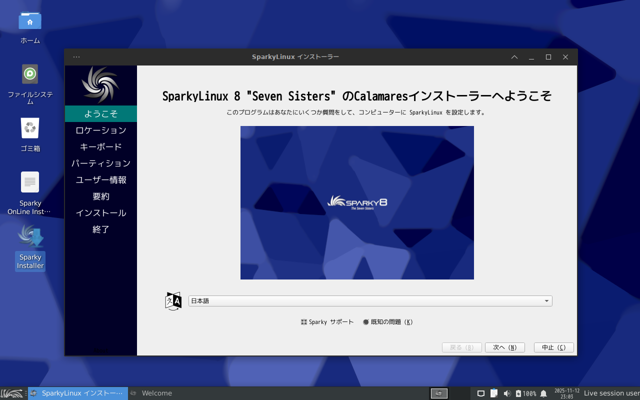 「SparkyLinux」では、デスクトップのインストーラとして、「XFCE」「LXQt」「KDE」版の「.iso」ファイルと、それ以外のものをインストールする用の「minimal」「.iso」があります。