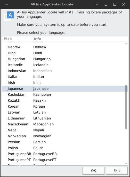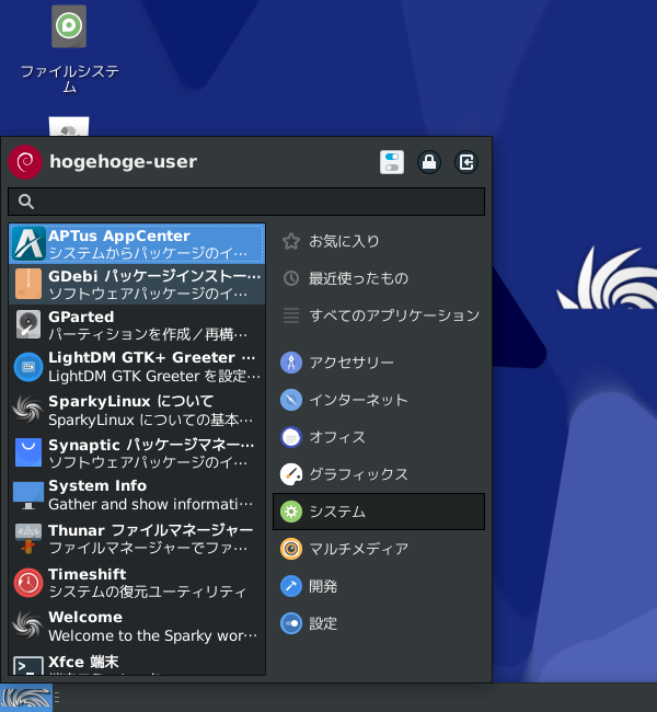「SparkyLinux」では、「APTus」を利用して、言語パッケージをインストールできます。