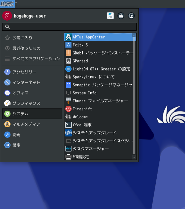 SparkyLinux - 8.1 - XFCE - パッケージ管理フロントエンド