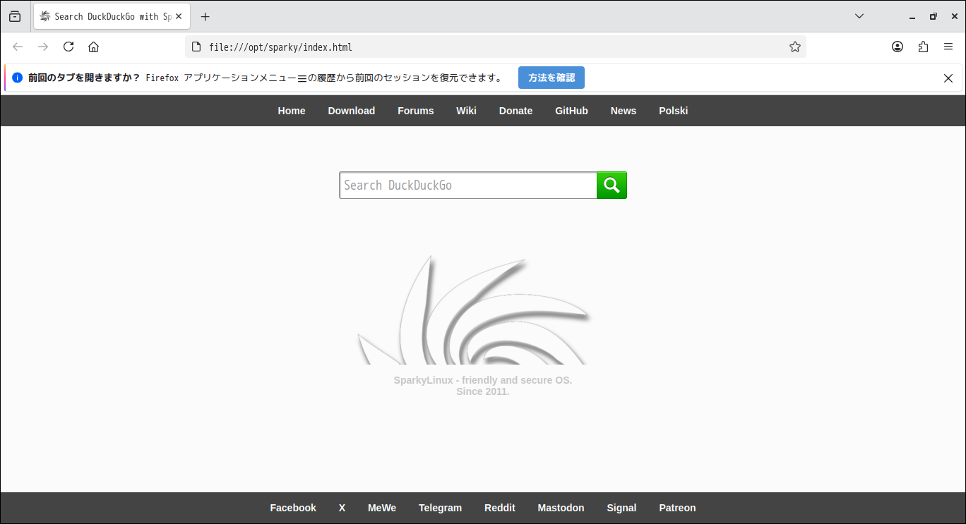 1. 概要 ブラウザとして、「Firefox」がデフォルトでインストールされています。 日本語言語パッケージをインストールした時点で、日本語化されます。 2. 起動 「スタート」→「インターネット」→「Firefox」