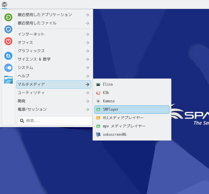 1. 概要 マルチメディアプレイヤーとして、「SMPlayer」をインストールして使用します。 2. インストール 「Synaptic」で、「smplayer」を検索して、インストールします。 3. 起動 「スタート」→「サウンドとビデオ」→「SMPlayer」