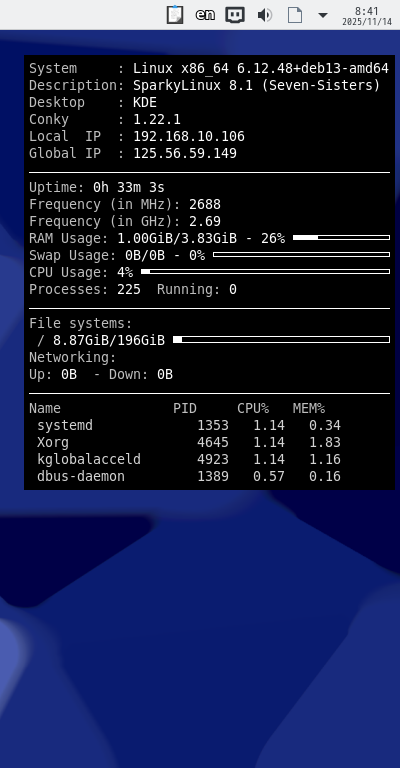 詳細は、「Conky - Wikipedia」をご参照ください。