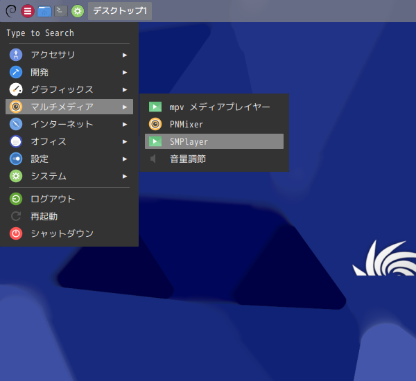 1. 概要 マルチメディアプレイヤーとして、「SMPlayer」をインストールして使用します。 2. インストール 「Synaptic」で、「smplayer」を検索して、インストールします。 3. 起動 「スタート」→「マルチメディア」→「SMPlayer」