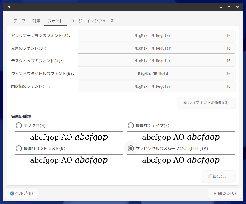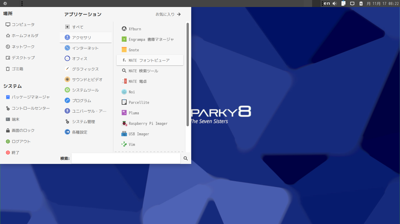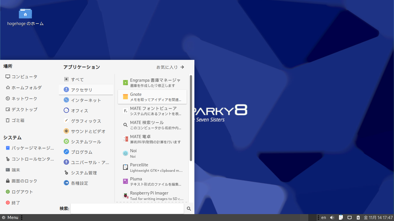 メニューは、デフォルトで「Advanced MATE Menu」が設定されておりましたので、カスタマイズして、そのまま使用します。