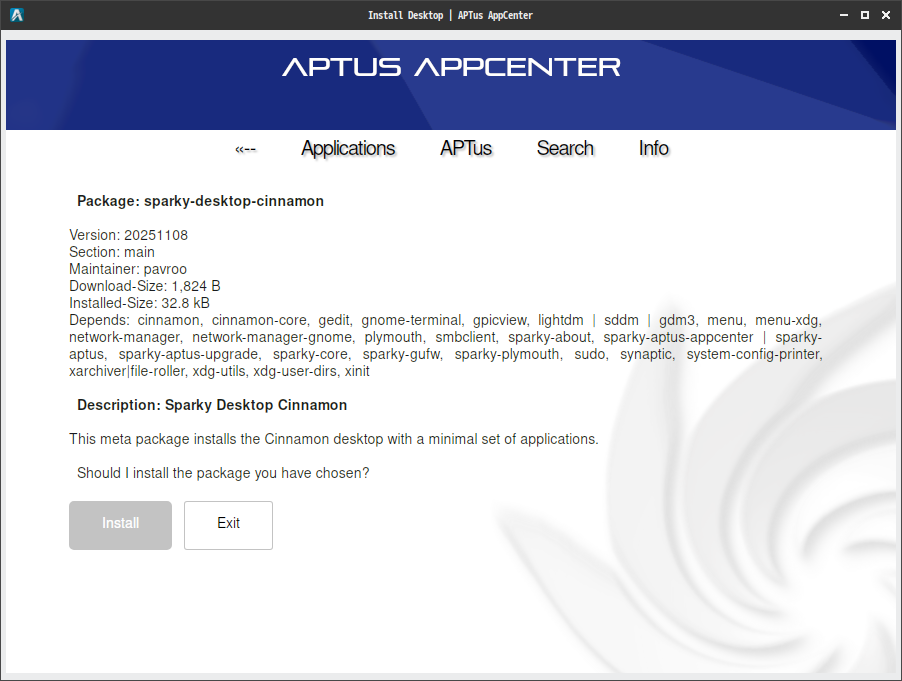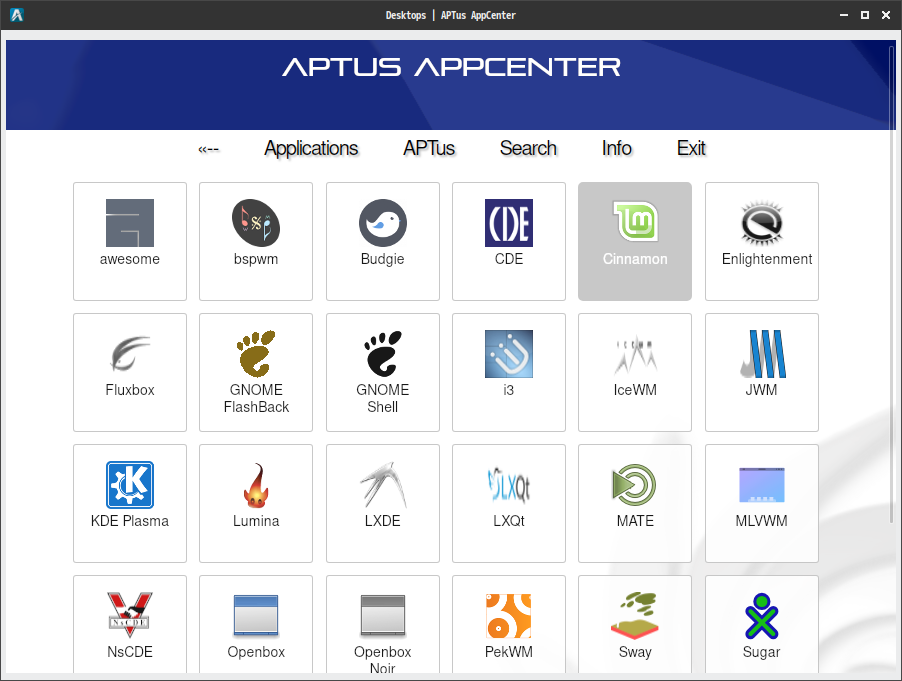 「APTus」で、他のデスクトップ環境をインストールできます。