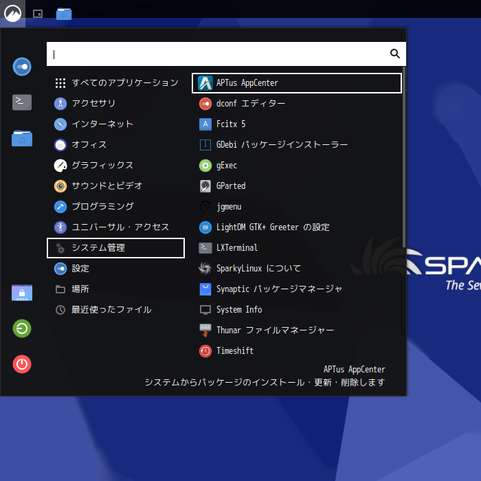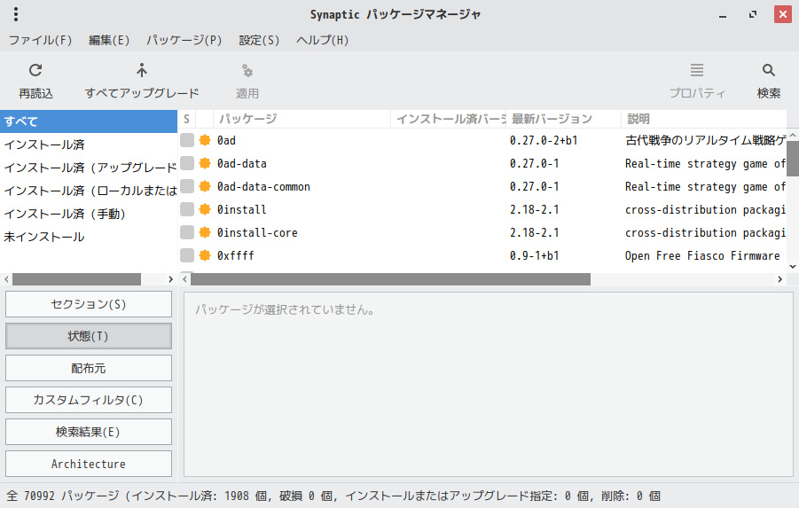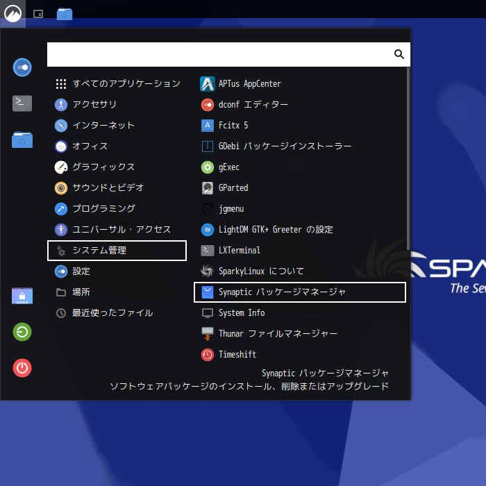 SparkyLinux - 8.1 - Cinnamon - パッケージ管理フロントエンド