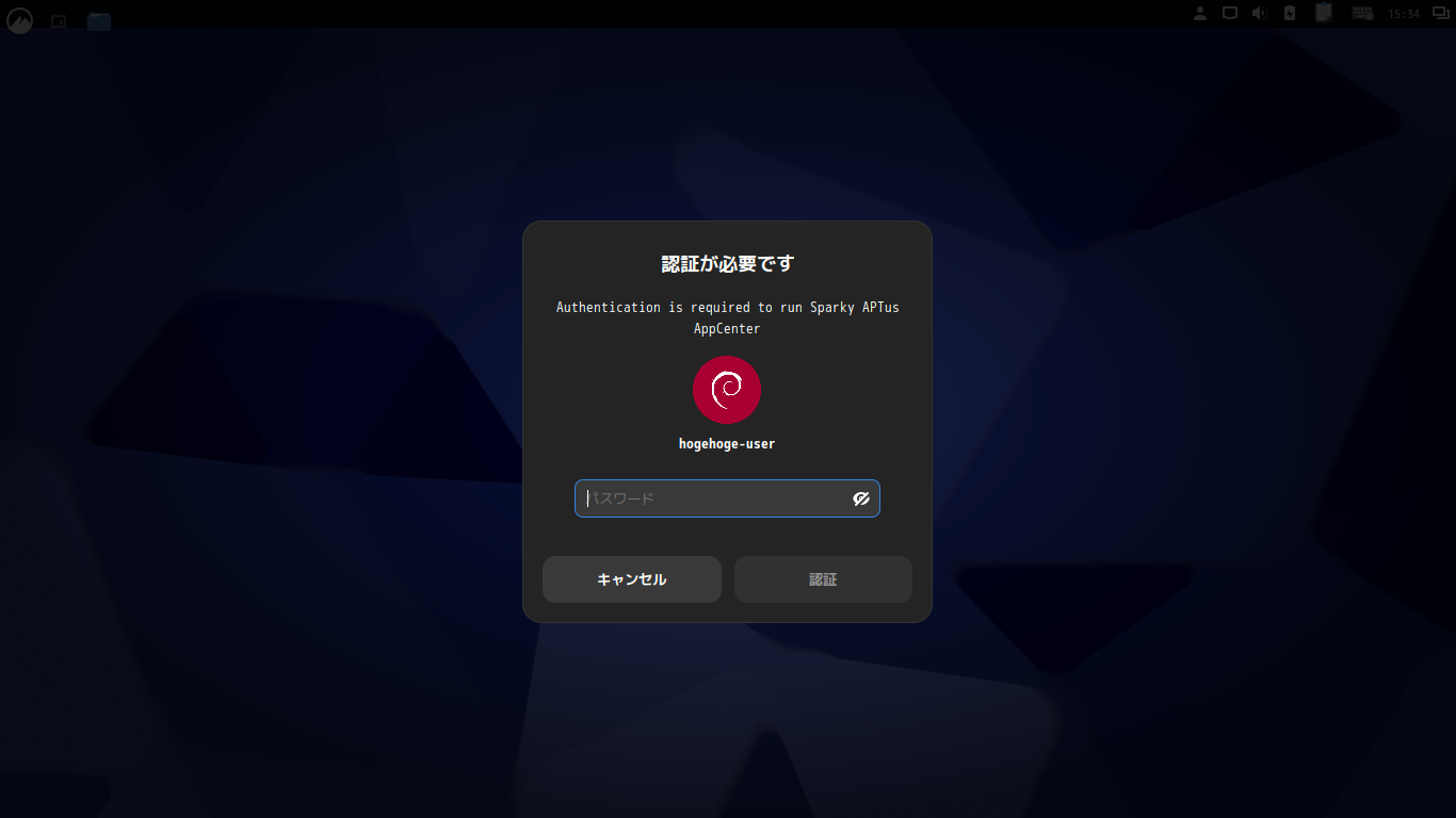 ログインユーザのパスワードを入力して 「認証する」 起動直後の状態です。 2025年8月20日の時点で、下記のバージョンでした。