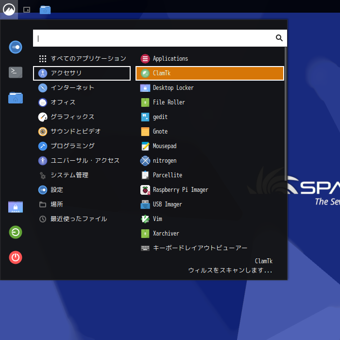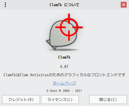 1. 概要 「ClamTk」は、「GUI」で操作するアンチウィルスソフトです。 2. インストール 「Synaptic」で、「clamtk」を検索して、インストールします。 3. 起動 「スタート」→「ユーティリティ」→「ClamTk」 (あれ?2つありますね、下の方が正解でした)