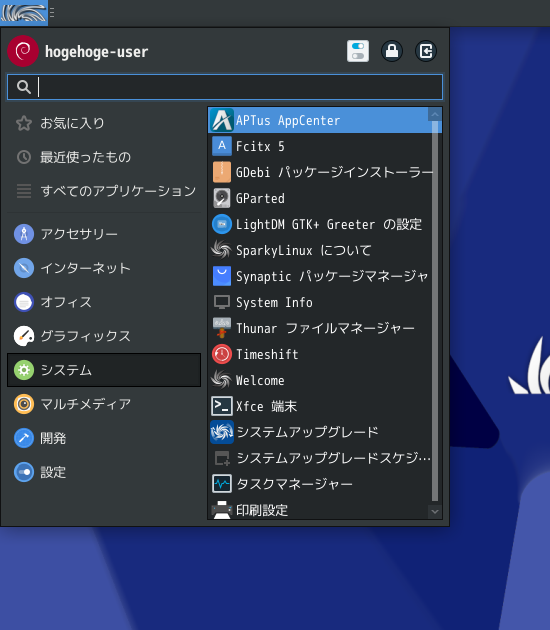 SparkyLinux - 8.2 - XFCE - パッケージ管理フロントエンド