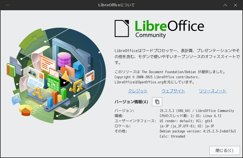 操作方法等については「オフィススィート LibreOffice」をご参照ください。