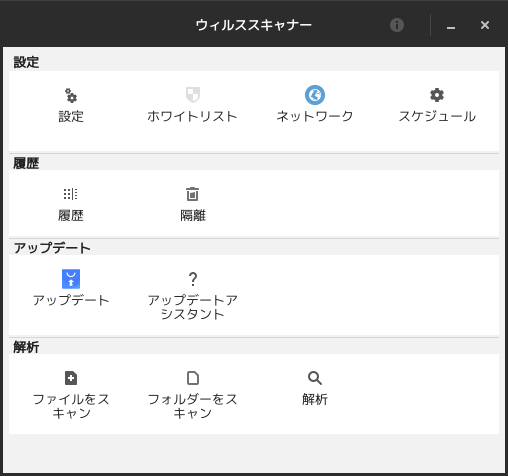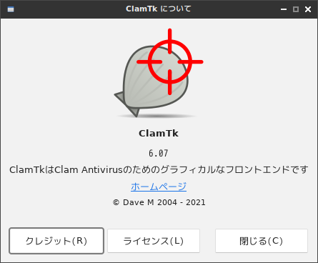 1. 概要 「ClamTk」は、「GUI」で操作するアンチウィルスソフトです。 2. インストール 「Synaptic」で、「clamtk」を検索して、インストールします。 3. 起動 「スタート」→「アクセサリ」→「ClamTk」