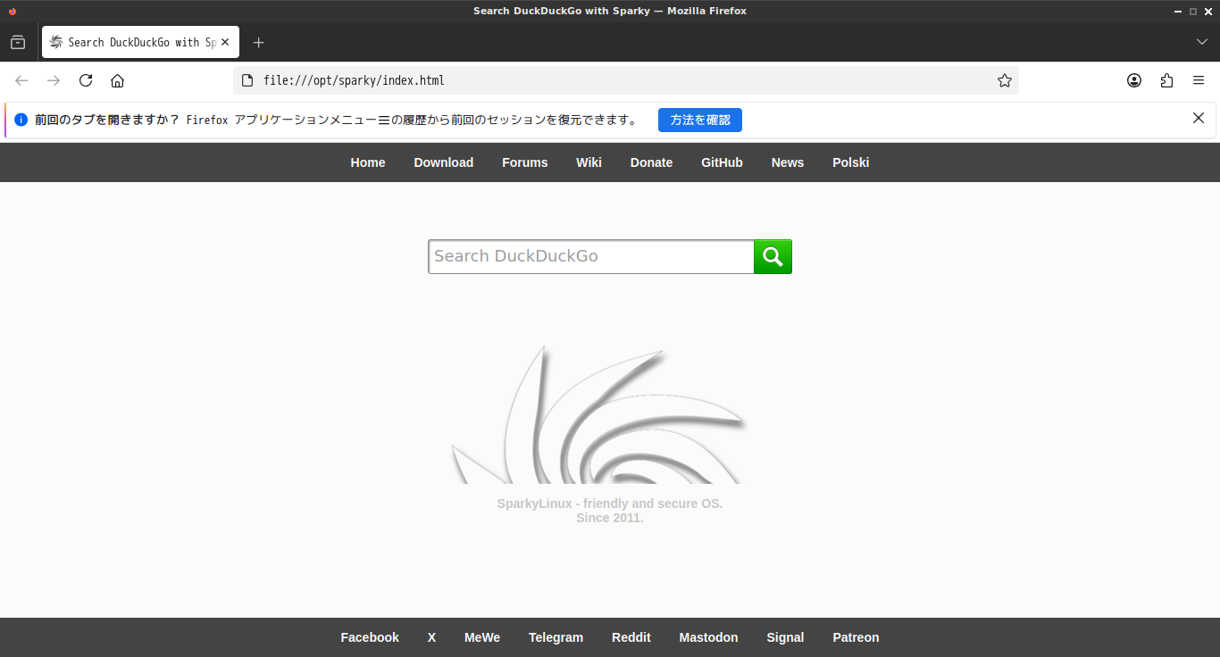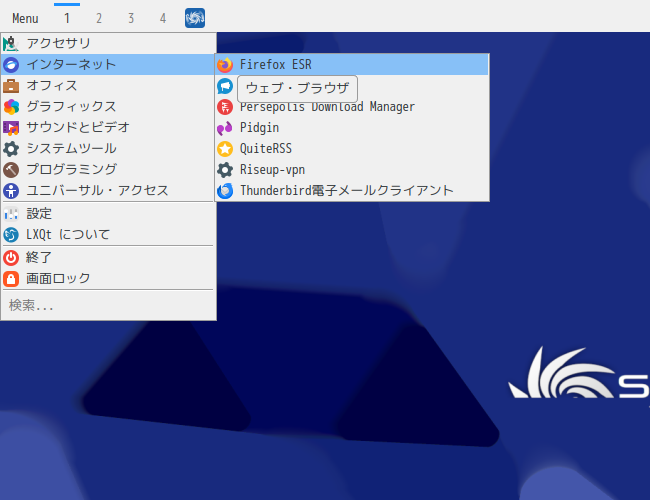1. 概要 ブラウザとして、「Firefox」がデフォルトでインストールされています。 日本語言語パッケージをインストールした時点で、日本語化されます。 2. 起動 「スタート」→「インターネット」→「Firefox」