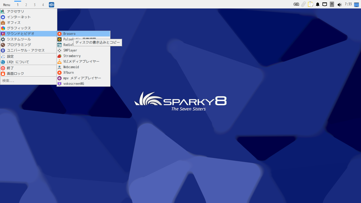 SparkyLinux - 8.2 - LXQt - 光ディスクライティング Brasero