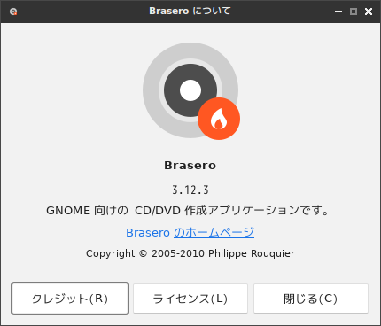 光ディスク(CD・DVD)ライティングソフトとして、「Brasero」を使用します。