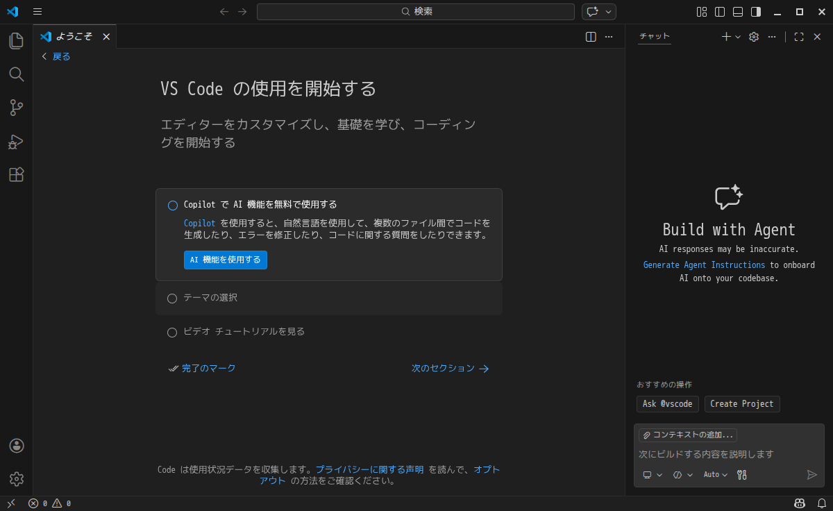 日本語化後、再起動直後の状態です。