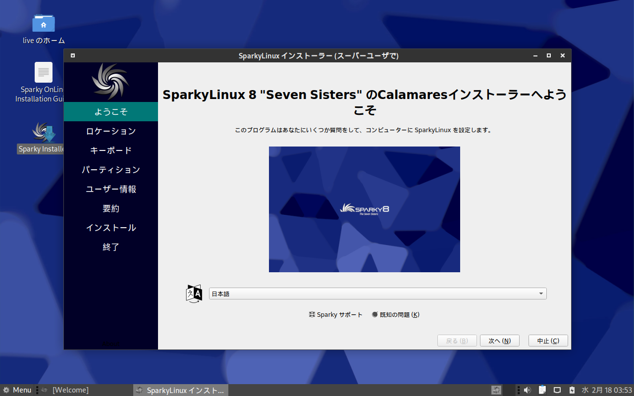 以降は、「SparkyLinux - 8.2 - 共通事項」をご参照ください。
