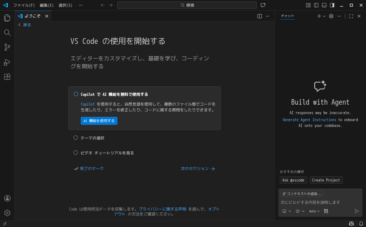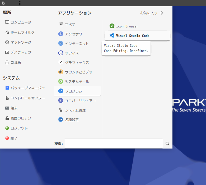 1. 概要 開発環境として、「Visual Studio Code」を使用します。 2. インストール 「APTus」でインストールします。 インストール手順の詳細や操作については、「Visual Studio Code - インストール・更新」をご参照ください。 3. 起動 「スタート」→「開発」→「Visual Studio Code」