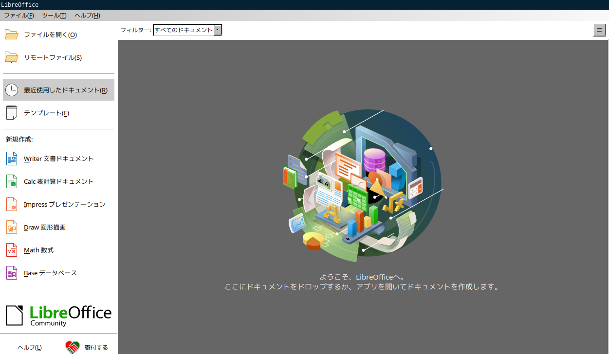 操作方法等については「オフィススィート LibreOffice」をご参照ください。
