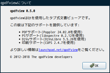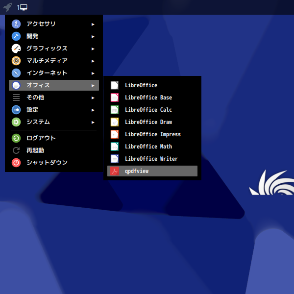 1. 概要 ドキュメントビューアとして、「qpdfview」を使用します。 「i3wm」を「Openbox」上にインストールしていますが、「qpdfview」は、「Openbox」にデフォルトでインストールされています。 言語パッケージをインストールした時点で、日本語化されます。 言語パッケージのインストールに関しては、「Linux - SparkyLinux - 8.2 - 共通事項」をご参照ください。 「.pdf」以外のファイルが見られるかは、存じません。 2. 起動 「スタート」→「オフィス」→「qpdfview」