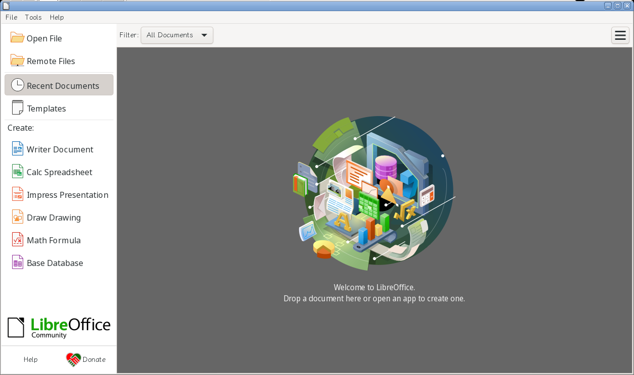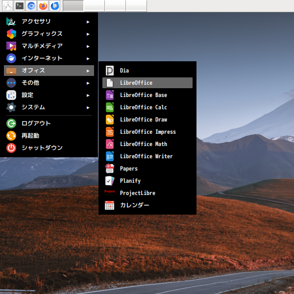 わたしは、オペレーティングシステムのインストール時に、「LibreOffice」をオフィススイートとして選択しているので、デフォルトでインストールされています。