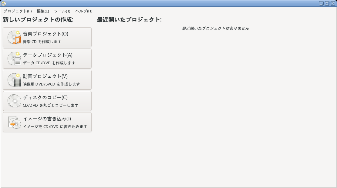 操作方法等については、「デスクトップ環境構築 - 共通事項 - 光ディスクライティング」をご参照ください。