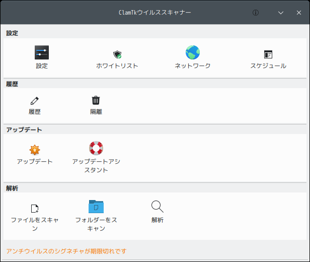 操作方法については、「デスクトップ環境構築 - 共通事項 - ClamTk」をご参照ください。