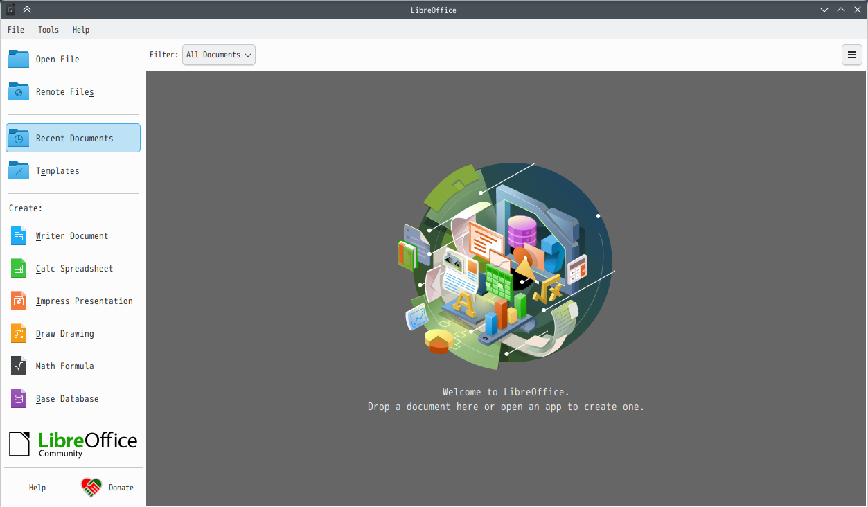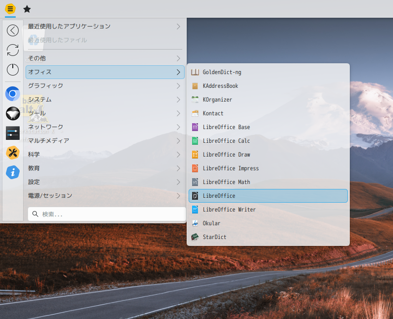 1. 概要 オフィススイートとして「LibreOffice」を使用します。 「LibreOffice」は、デフォルトでインストールされていますが。 日本語化しようとしたら、リポジトリに「Language Pack」が存在しない・・・。 仕方ないけど、英語のまま、使うしかないですね。 まだまだ、多国化に対応できていないようです。 2. 起動 「スタート」→「オフィス」→「LibreOffice」