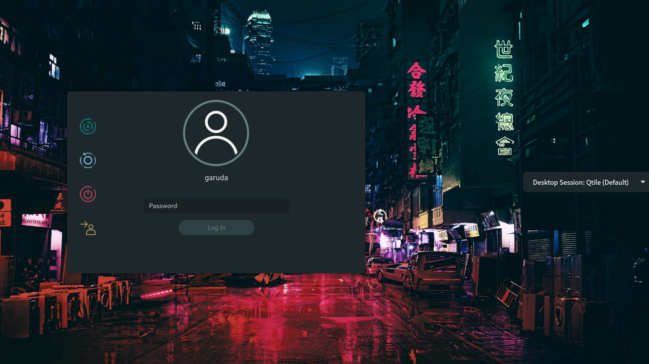 ログイン後、少し待つと、ダイアログが起動します。 下部、中央の「Garuda Linux Install」 インストーラが起動します。 ありがたいことに、「qtile」も日本語が化けていません。 以降の手順は、「Garuda - 211129 - 共通事項」のとおりです。 ログイン画面が表示されれば、インストールは完了です。 |