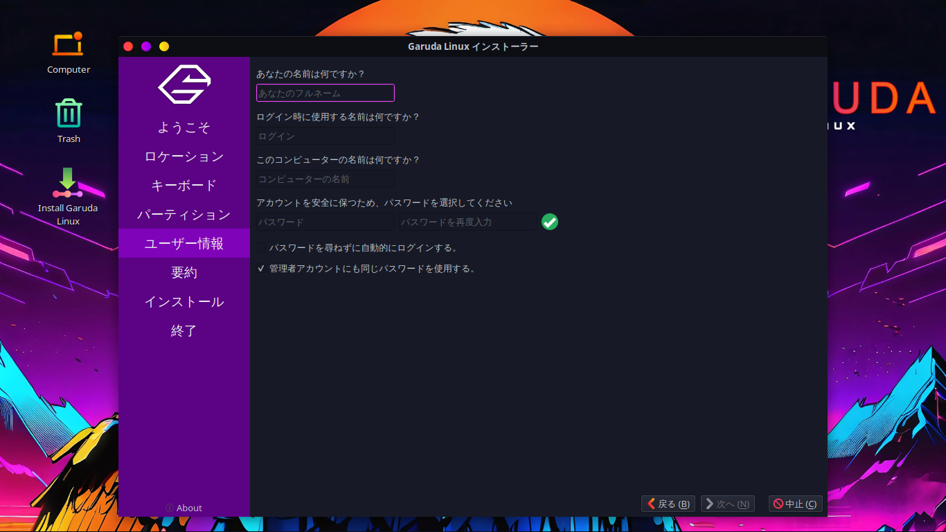 ここでは、「Cinnamon」のインストール時の画面を掲載しています。