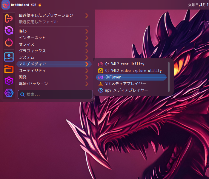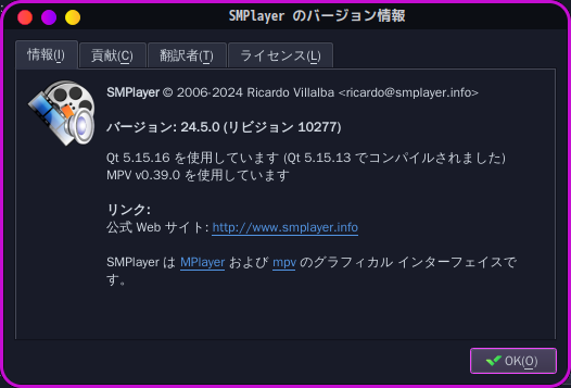1. 概要 マルチメディアプレイヤーとして「SMPlayer」を使用します。 2. インストール 「Octopi」で、「smplayer」を検索して、インストールします。 3. 起動 「スタート」→「マルチメディア」→「SMPlayer」