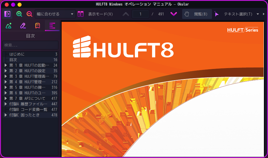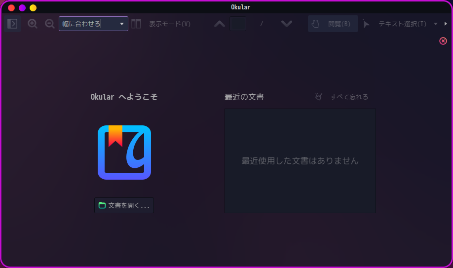 1. 概要 ドキュメントビューアとして「Okular」を使用します。 「Okular」は、デフォルトでインストールされています。 2. 起動 「スタート」→「オフィス」→「Okular」