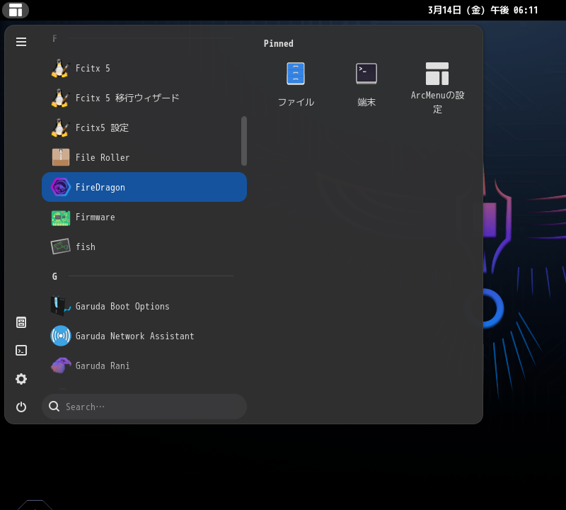 Garuda - 250308 - GNOME - ブラウザ FireDragon