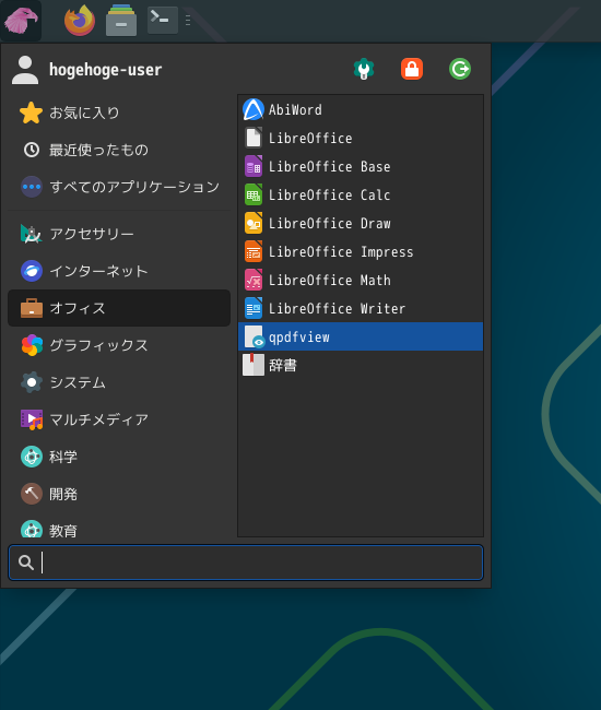 1. 概要 ドキュメントビューアとして、「qpdfview」を使用します。 「qpdfview」は、デフォルトでインストールされています。 2. 起動 「スタート」→「オフィス」→「qpdfview」