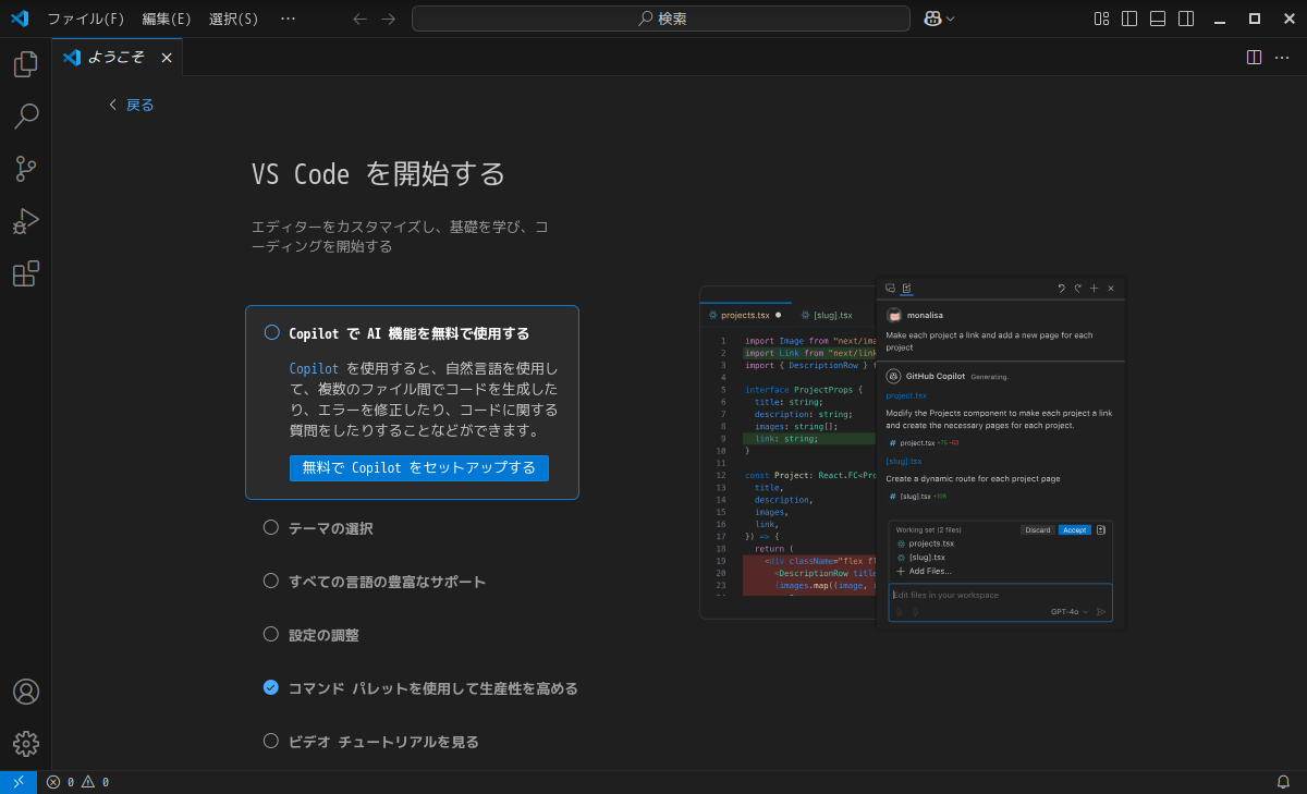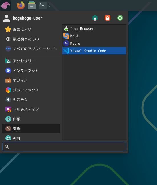 1. 概要 開発環境として、「Visual Studio Code」を使用します。 2. インストール 「Pamac」で、「visual-studio-code-bin」を検索して、インストールします。」 3. 起動 「スタート」→「開発」→「Visual Studio Code」