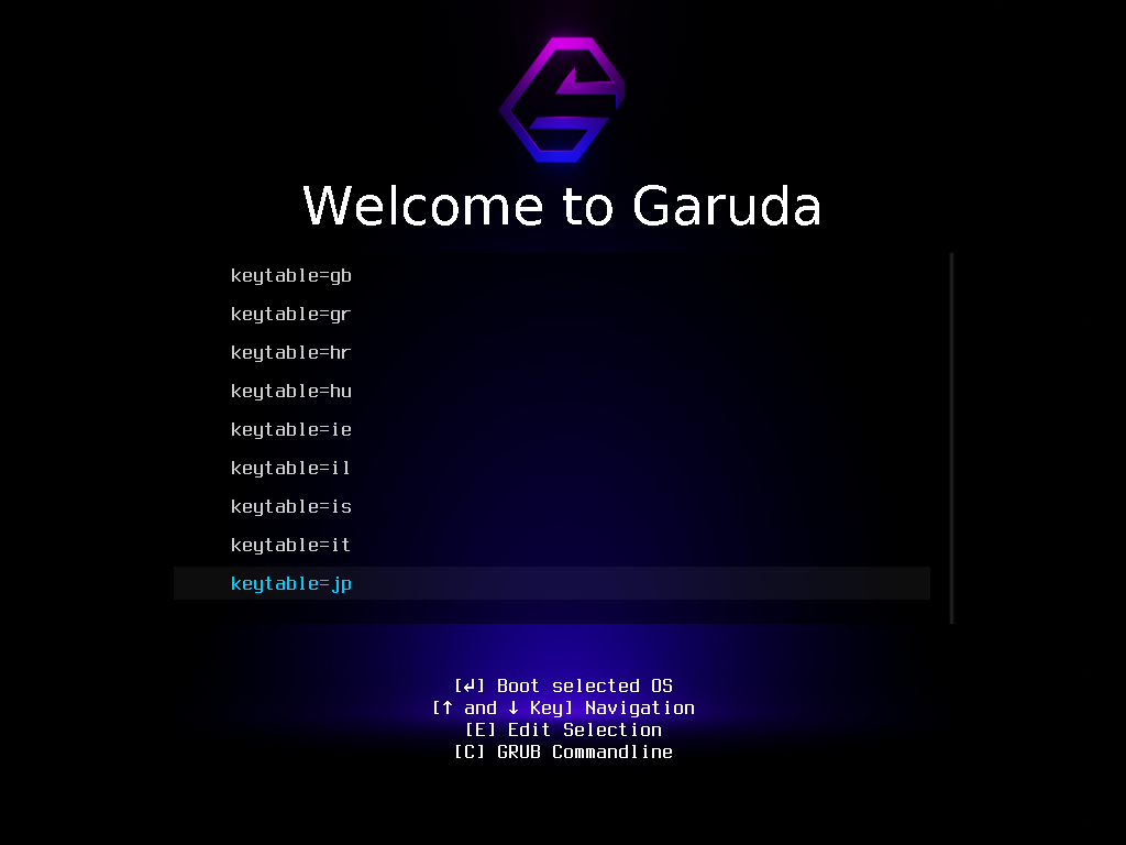 「keytable=jp」 を選択して Enter